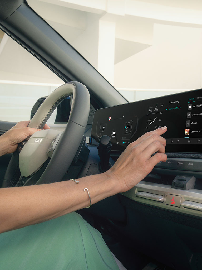 Genieße deine Lieblingsmusik, ohne dein Smartphone anschließen zu müssen. Der Kia EV3 verbindet sich nahtlos mit deinen Musik-Apps. Weitere Streaming-Services kannst du einen Monat lang kostenlos testen – Amazon Music und Soundcloud werden zum Start verfügbar sein; weitere Anbieter werden folgen.8 9