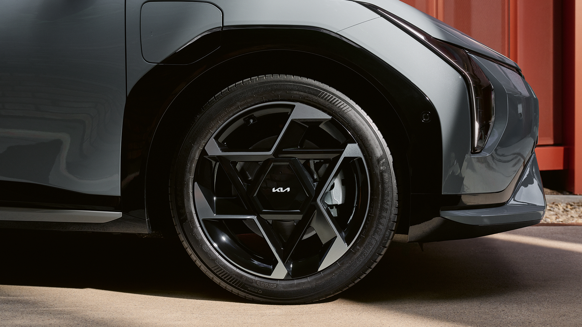 Markante Designelemente, wie die flügelartigen Front- und Heckstoßfänger sowie die einzigartigen 19''-Felgen mit dreieckigem Design, verleihen dem Kia EV4 GT-line eine besonders dynamische und futuristische Optik.