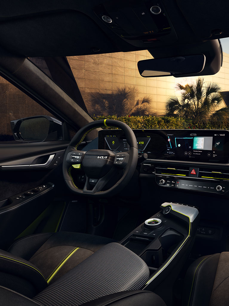 Dank des langen, flachen Designs der E-GMP bietet der Kia EV6 GT ausreichend Platz, um sich zurückzulehnen und die Fahrt zu genießen. Mit großzügigen, 60:40 umklappbaren Sitzen, leichtem Zugang und hochwertigen Materialien kann jeder an Bord entspannt, umfassend vernetzt und komfortabel reisen.