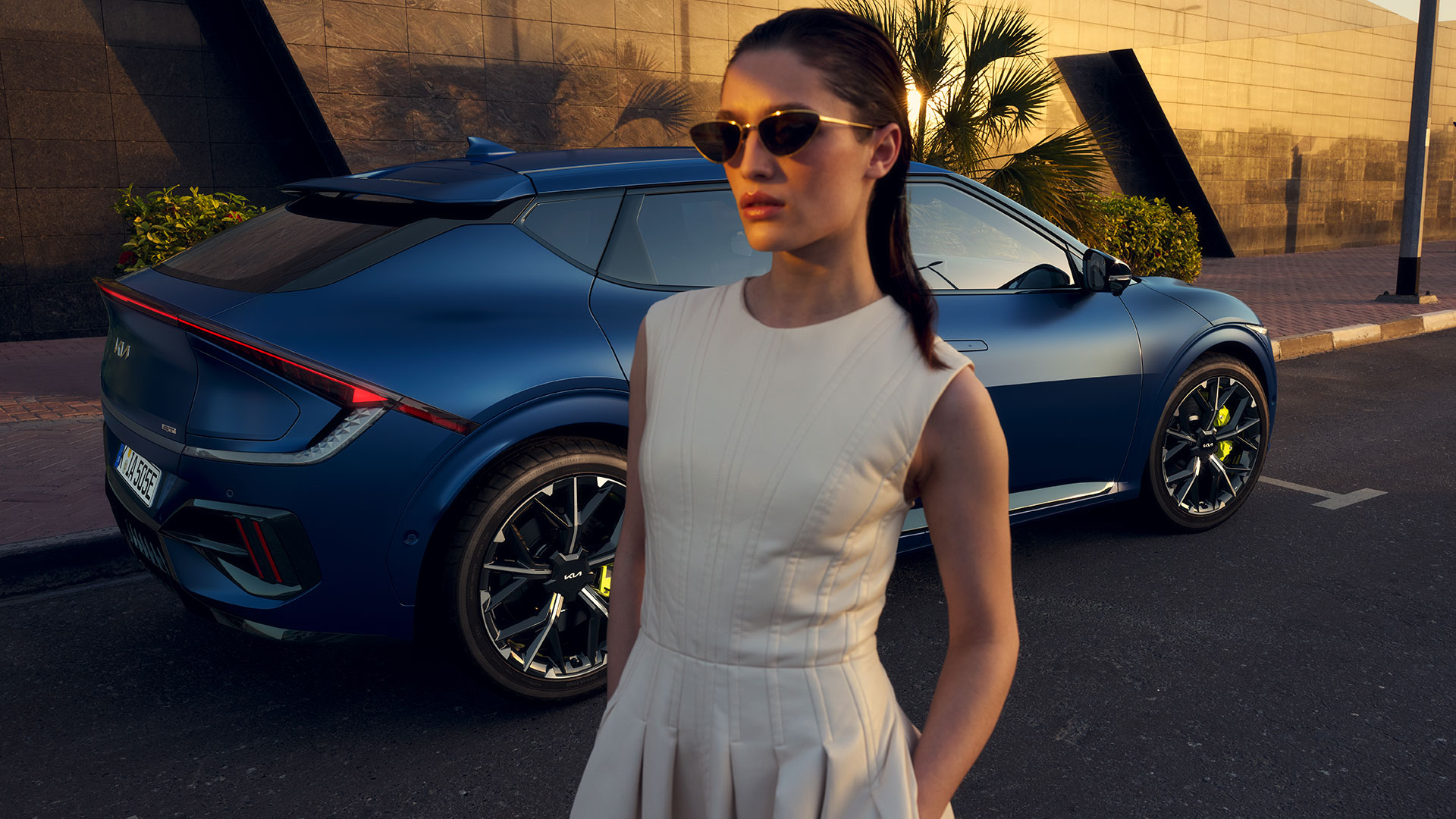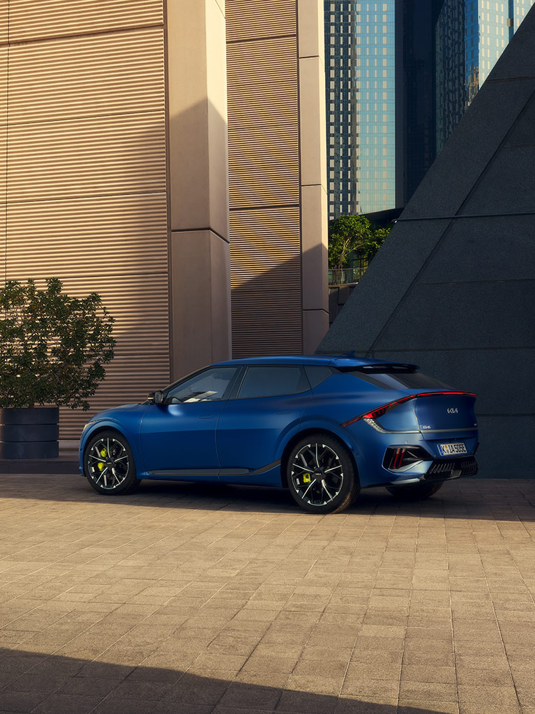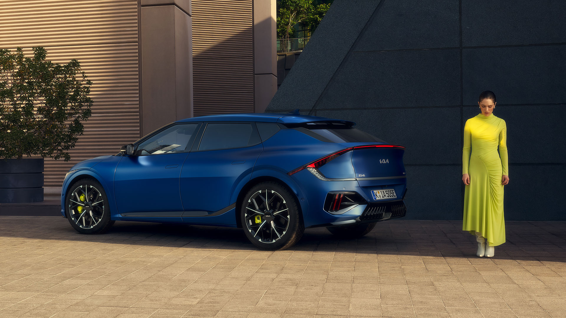 Kia EV6 GT (448 kW/609 PS): Stromverbrauch kombiniert 20,9 kWh/100 km. CO2 -Emissionen kombiniert 0 g/km. CO2 -Klasse A. Bis zu 450 km Reichweite.1
